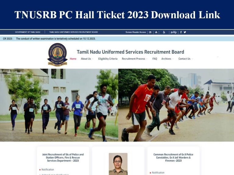 Admit Card TNUSRB PC Exam Date 2023 Out – Download Tamil Nadu Police Constable Hall Letter/ TN Firemen Admit Card Details Here!!!